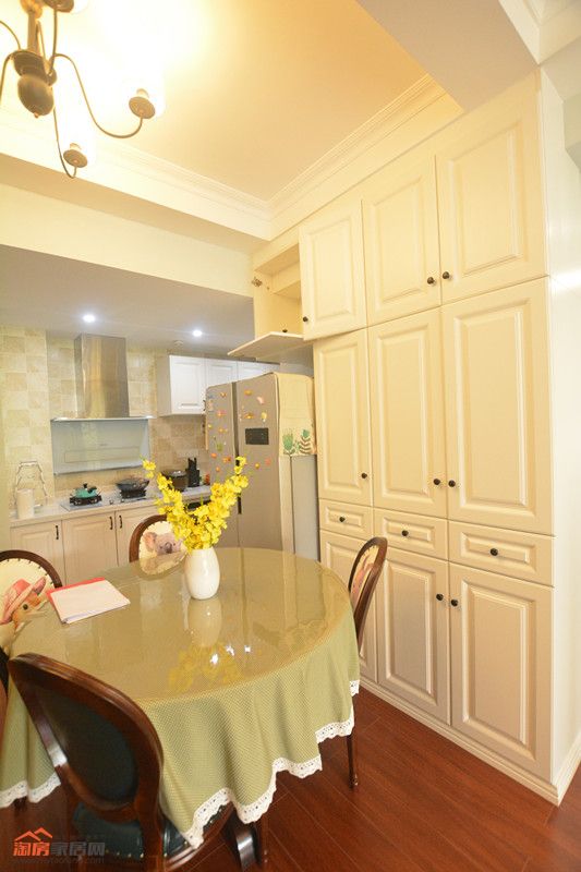 餐桌做一组柜子,增加了收纳空间,而且因为做了开放式厨房,冰箱的位置有了,做饭的时候非常方便。
