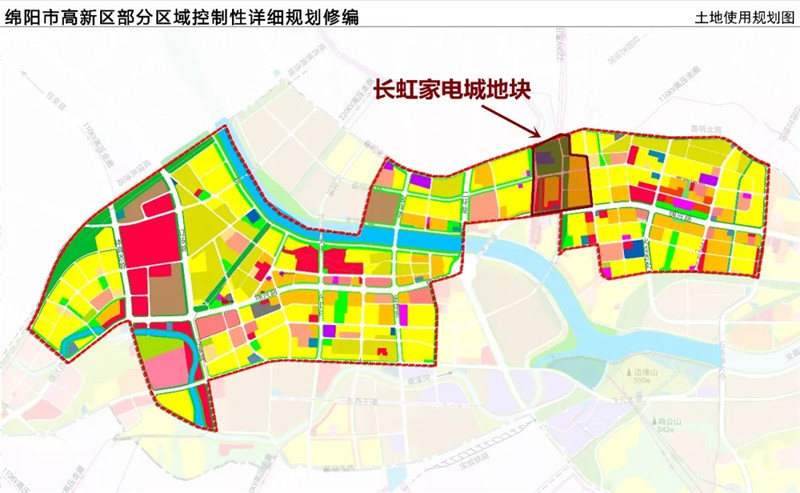 根据《绵阳市高新区部分区域控制性详细规划调整》,长虹家电城、商贸中心及技术中心土地已规划调整为商业和居住用途。