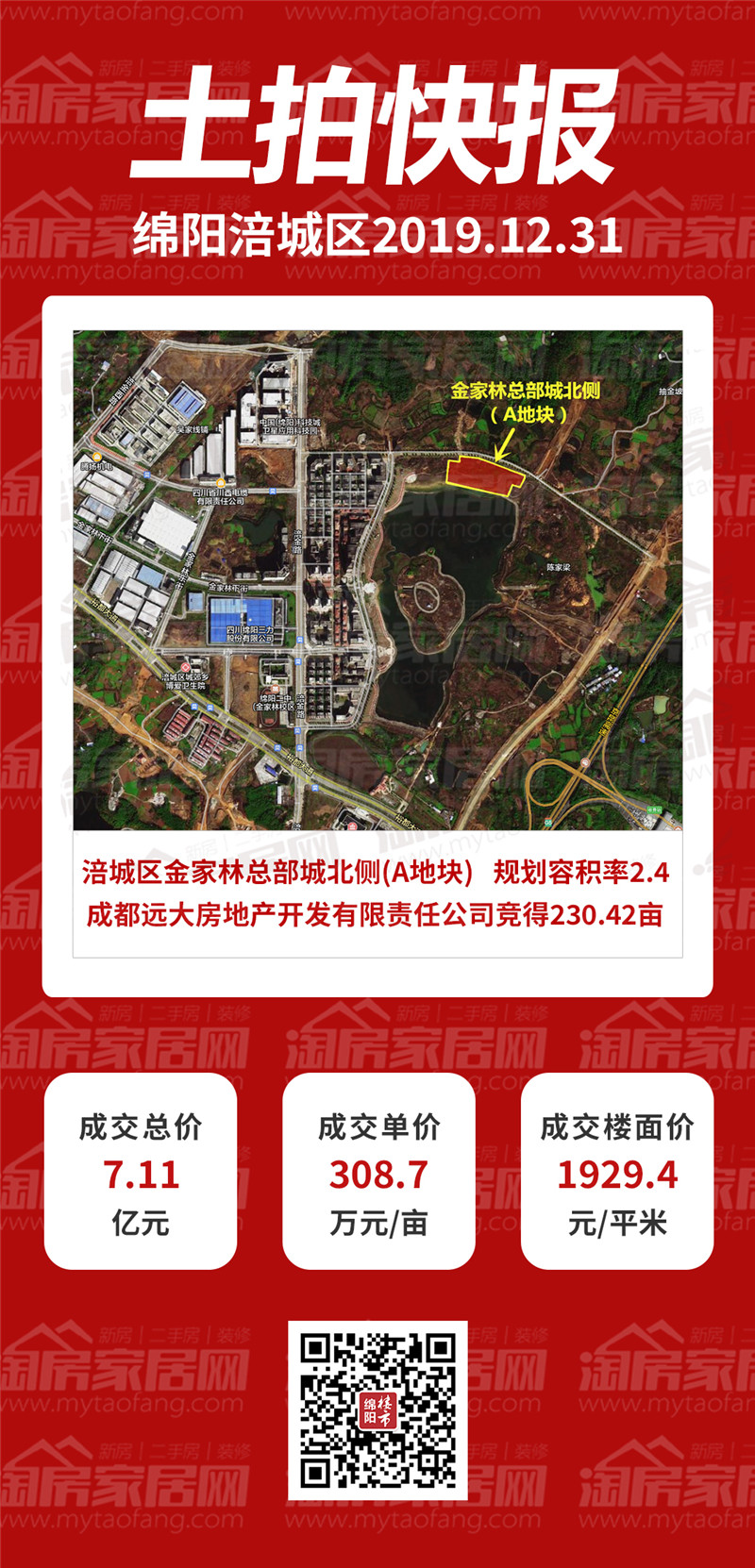 现场也仅一轮举牌,以底价成交,成交总价7.11亿元、成交单价308.7万元/亩、成交楼面价1929.4元/㎡。最终赢家是成都远大房地产开发有限责任公司,成都远大房地产开发有限公司是远大置业集团的全资子公司。