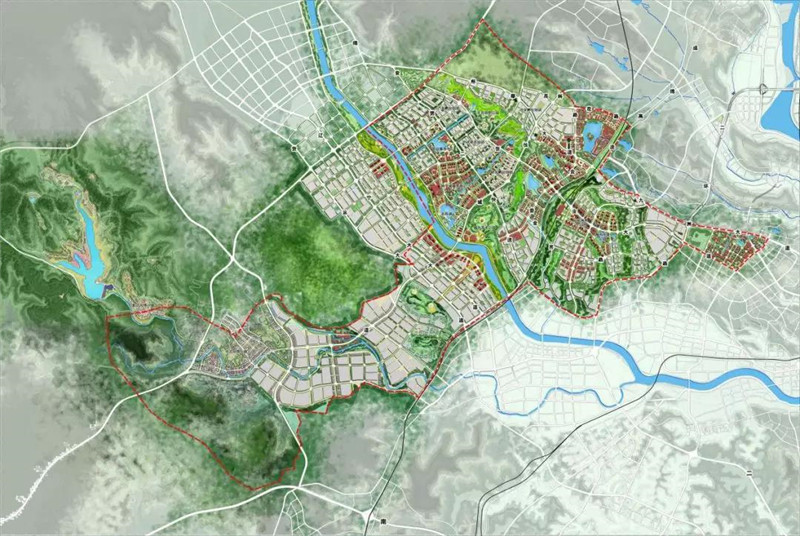 安昌河生态湿地景观的对侧便是科技城服务核心区,这一带功能定位为商务文化居住区,由“一园”—中央公园、“双中心”—国际交流中心、高端科研商务中心、“居住区”—科研商务居住区组成。