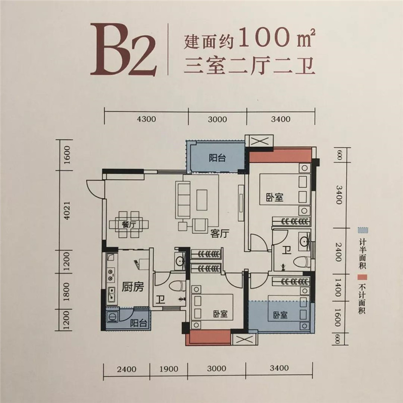 全部为100㎡以上三室套型 赠送面积占比最多达到20%