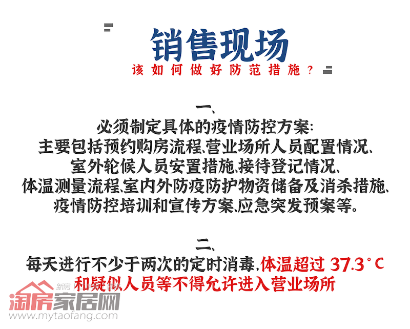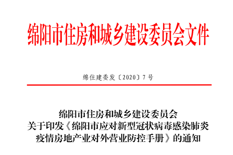 截止发文前,全国确认新冠肺炎病例已达42744例,疑似病例21675例,治愈人数4045例,死亡人数1017例。疫情进入攻坚阶段,绵阳也终于等来了住建部的最新通知。根据绵阳市住房和城乡建设委员会关于印发《绵阳市应对新型冠状病毒感染肺炎疫情房地产业对外营业防控手册》的通知:为全面观测落实中央、省、市关于应对新型冠状病毒感染肺炎疫情防控要求,鼓励房地产业有序组织复工复业,规范疫情防控期间房地产开发企业和中介机构经营活动,切实保障人民群众身体健康和生命安全,结合疫情防控相关措施和经验做法,以及我市房地产行业实际,我委编制了《绵阳市应对新型冠状病毒感染肺炎疫情房地产业对外营业防控手册》,现印发你们,请结合实际参照执行。绵阳市住房和城乡建设委员会2020年2月11日 来源:淘房家居网