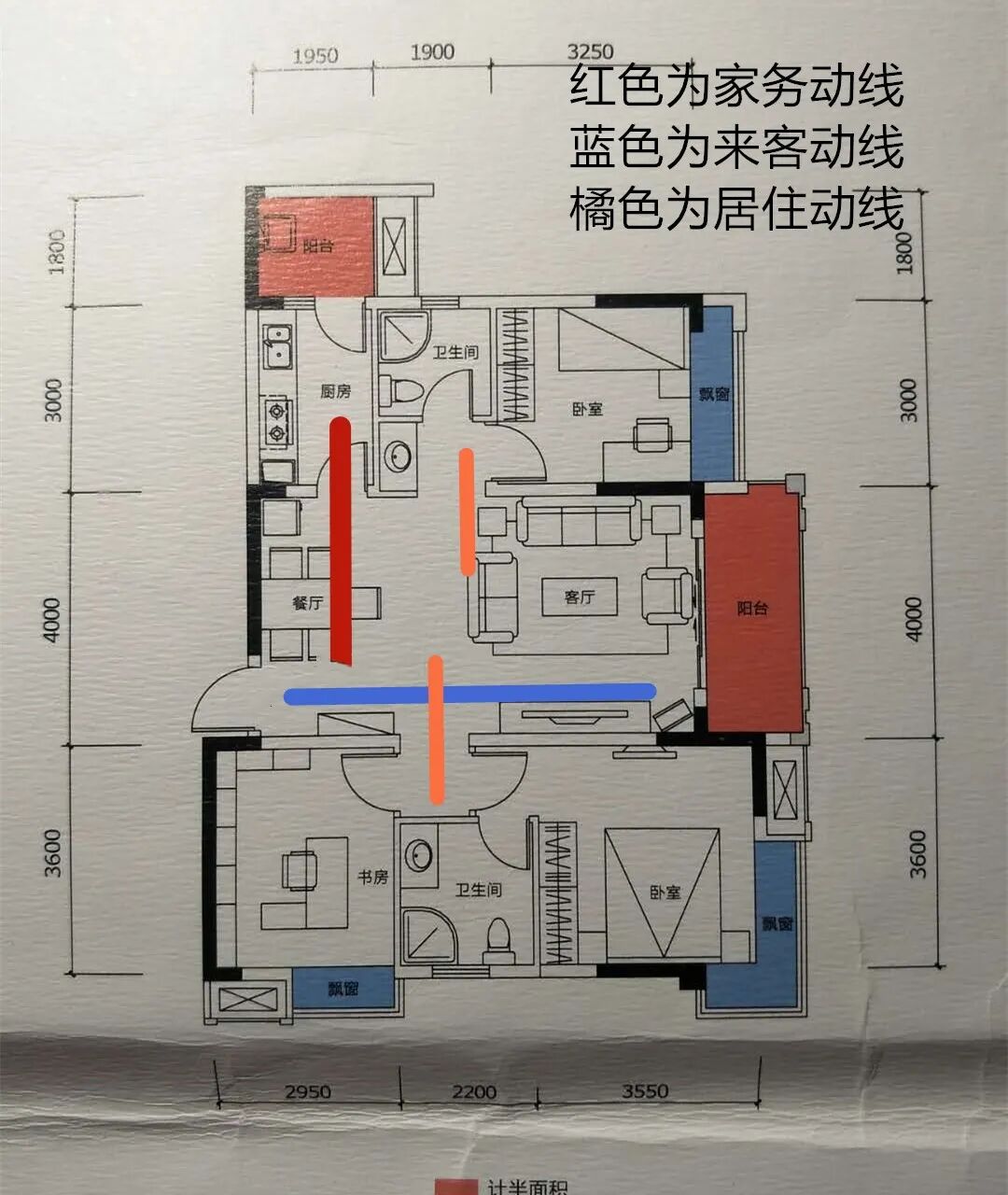 相对来说动线不是特别的好。来客动线和居家动线有交叉。