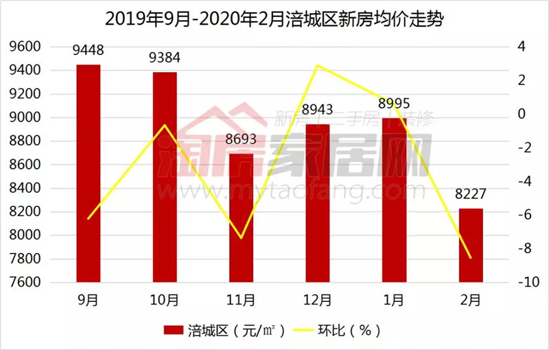 2月涪城区新房成交量价齐跌,环比下跌8.54%,每平米下降768元。环比1月,价差逐渐拉大。