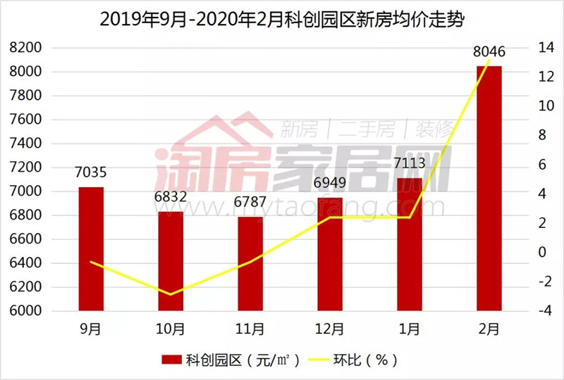 科创园区新房均价环比上涨13.12%,每平米上涨933元。与上月相比,房价有回升,对比最近半年科创园区的房价变化,从去年11月份已经有逐步回升的趋势。