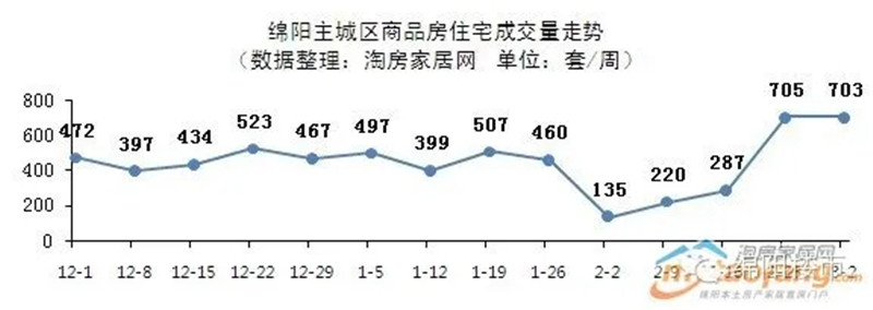 综合市场信息和某机构数据显示,整个2月绵阳共计成交新房733套,以备案成交居多,环比下降46.88%,同比下降45.13%。