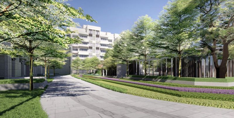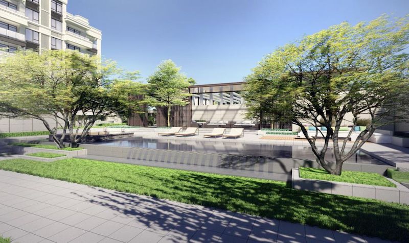 翡丽公馆的中庭景观规划,以新加坡式园林景观为概念基础,隐于名贵花树之中,配套建设了六个主题功能区:两大休闲区、特色水景区、儿童游乐区、BBQ露天烧烤区、中庭聚会区、环形健身跑道。为业主提供饭后消食、享受亲子时光的场地。