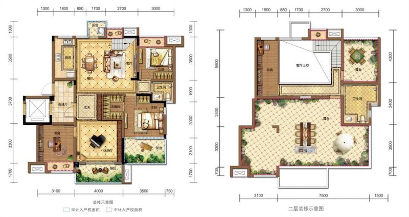 D4户型为1号楼的顶跃户型,为四房设计,建面约157.22㎡,整体规划功能性比较强。一层的户型布局和D3户型大致相同,只是客厅和次卧被规划为了客餐厅以及上下楼梯,客厅改为了休闲厅,它们都是电梯入户带独立玄关。顶层有两个露台、一个卫生间和一个活动空间,可供改造的范围比较大。2、3号楼临街部分规划有底商,小区内部则规划为架空层,并作为入户大堂使用。