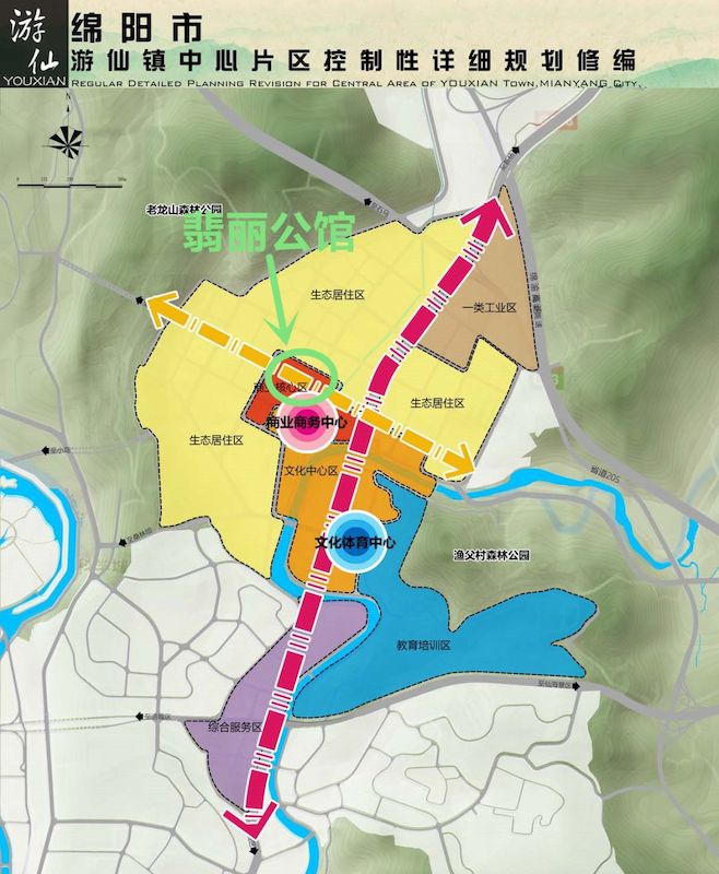 板块位于游仙区东部(仙海除外),与成渝环线高速接壤,向南向西分别连接六里村和科学城。处在城市内部,又和市中心、景区保持相对的距离,这也为板块带来了发展机遇。游仙区作为城市老区,如今正在城市第三轮旧改棚改的风口上,重点改造的区域都是发展得更早的区域。一些较新的区域如游仙镇却迎来了新的规划,在2018年底游仙镇中心片区控制性详细规划中,将板块功能定位为以教育培训、智造、商业商务、居住为主导的山水宜居新区。重点打造“两心两轴带六区”的结构形态,以仙桃路的中段为圆心的商业商务中心,以及以金童路与游仙东路交汇处的休闲娱乐中心。