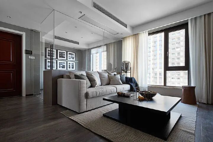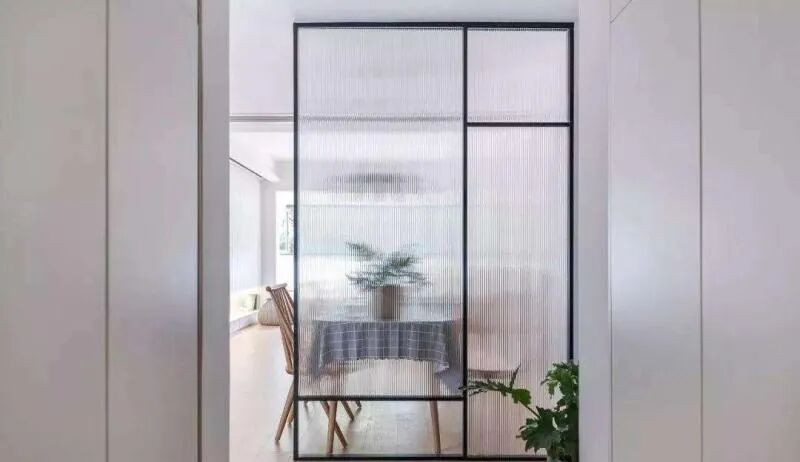 客厅背后的多功能房间设计也有一种,在考虑的时候也推荐用一种较新型的材料——长虹玻璃做隔断(下部分做实墙,上部分做长虹玻璃隔断)