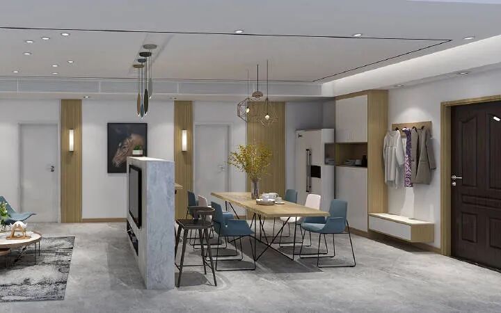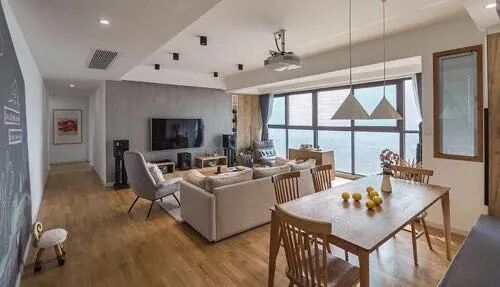 总结:其实方案不必越多越好,关键是要发现户型的亮点,合理规划。这个户型目前是设计了三种方案,大家可以把喜欢的部分结合起来。另外还有一种方案,电视墙在客餐厅中间,不过大部分业主觉得这种布局舒适度不太高。所以我发两张图给大家参考一下就可以了。
