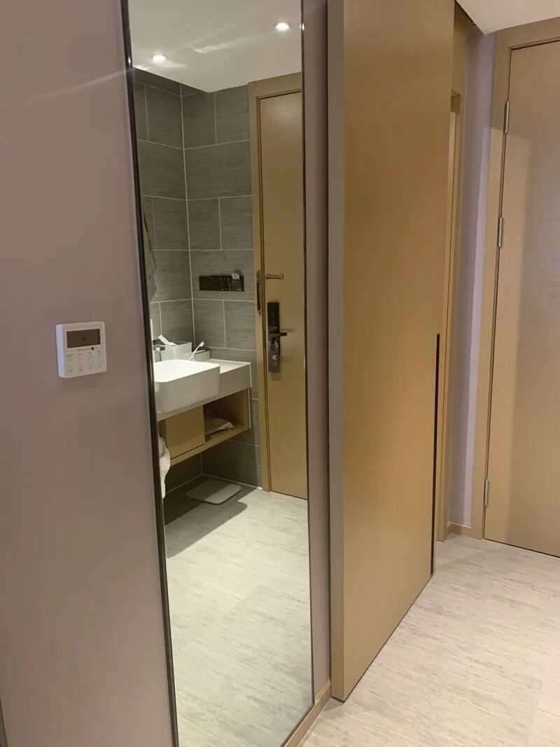 1、推拉门:推拉门本身不占空间,但是要注意推拉门五金配件一定要选好,这样推拉才顺畅。门后面还可以放穿衣镜,出门照一照,可以美美的出门啦!
