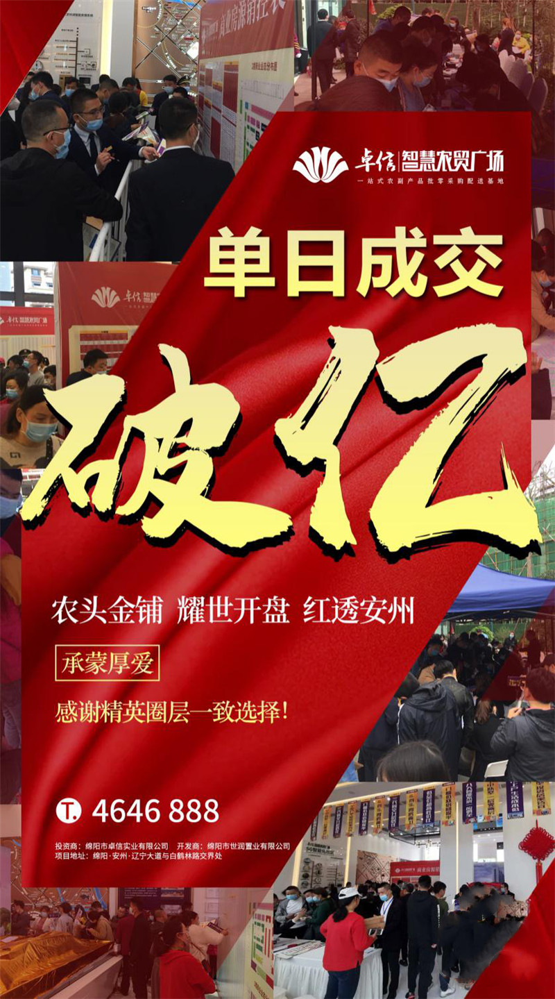卓信·智慧农贸广场是绵阳首个智慧农贸,安州区重点民生工程,在国家政策大力倡导农贸市场智慧化管理的时代背景下,卓信·智慧农贸广场紧跟政策脚步,顺应市场发展,必将成为下一个投资风口。这就是卓信·智慧农贸广场再现旺铺秒抢场景的原因。