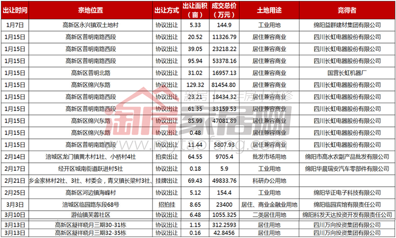 和去年同期相比较,今一季度的住宅用地成交量爆发增长,同比增长约638.22%。主要是因为去年底公示的长虹家电城搬迁,在今年初火速完成了地块变性手续。另一方面,伴随着临园路东段68号地块的成交,成交亩单价2710.59万元/亩,绵阳地价刷新了记录,再次迈上新台阶。去年绵阳各个区域的“地王”,涪城路14号(新广厦绵州里)、火炬东街45号(三汇金府)、金西湖1#地块(九洲云栖湖)、五里梁12#地块(东原凯越印江山)....基本都已经入市。今年的供应量绝不会止于此,各个楼盘都在抓紧推货,积极性明显提升,到二季度甚至下半年,还会有越来越多的新房进入。