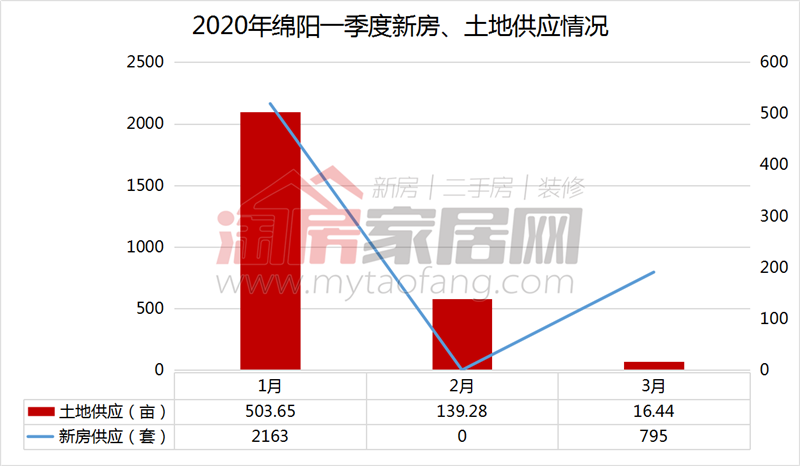 一季度初,绵阳新房、土地供应一切照常。到了2月份,绵阳新房供应骤停;3月新房供应恢复,土地供应逐月减少。