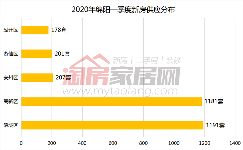 一季度绵阳新房供应合计2958套,主力来自涪城区和高新区,分别有1191套、1181套,占比约40.26%、39.93%;其次是安州区和游仙区,分别有207套、201套,占比约7%、6.8%;一季度绵阳有10个楼盘开盘(朗基天域、九洲云栖湖、嘉唯华庭、华西滨江天越、东辰仙海院子、汇美尚座、三汇金府、新广厦绵州里、荣兴名屋、卓信智慧农贸市场),8个楼盘加推(领地观江府、领地东原阅城、兴发铂金华府、兴发御景湾、华驰书院、朗基天域、世茂云锦、三汇人和山水)。而2019年一季度绵阳有26个楼盘有开盘、加推动作,新入市房源达到了4942套,今年季度入市房源同比减少约40.15%。