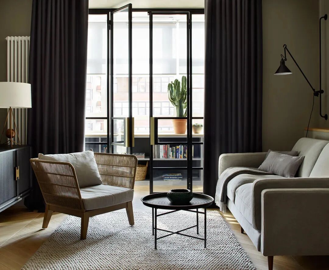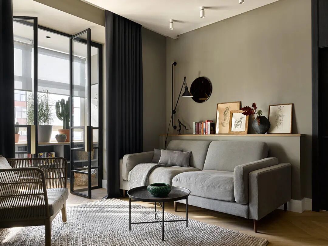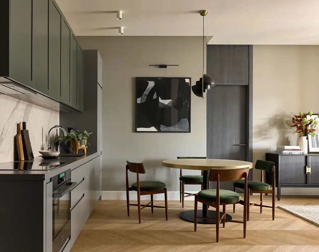 这是来自俄罗斯的一套装修住宅,色彩搭配上也很丰富,仔细一看,其实就是我们喜欢的莫兰迪色系搭配而成的。