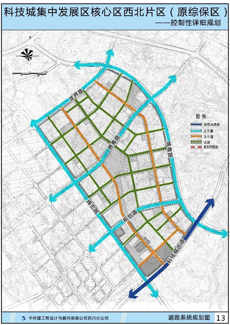 道路等级:快速路——主干路——次干路——支路四级。其中快速路包括科技城大道;主干路包括绵宏路、绵泰路、龙界路、界青路、规划路。