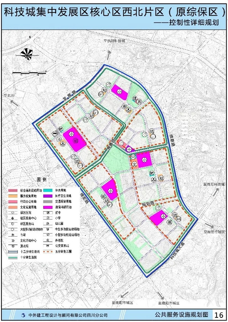 十五分钟生活圈和十分钟生活圈规划布置初中、小学、社区服务中心、医院、文化活动中心、养老院、大中型多功能运动场地等设施。
