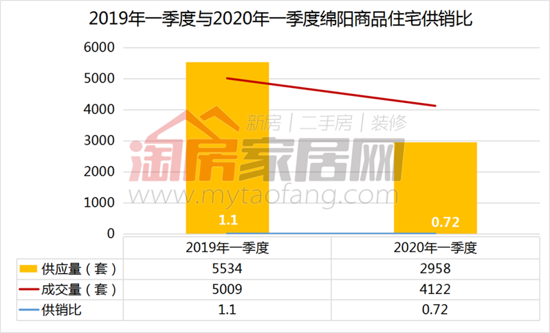 综合市场公开信息以及淘房家居网数据显示:一季度绵阳全市商品住宅成交受疫情影响,成交量有所下降,成交套数4112套,环比下跌33%,同比下跌约17.7%。商品住宅供应下降,环比下跌约40%,同比下跌约46.55%。